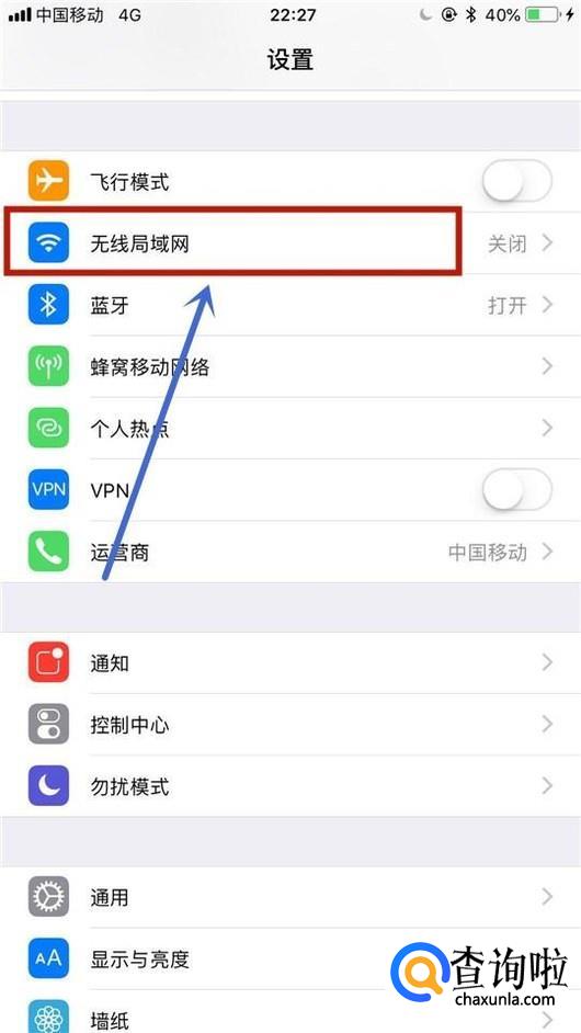 然后点击无线局域网,如下图所示。
