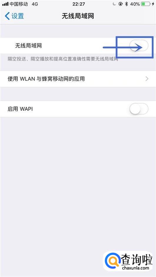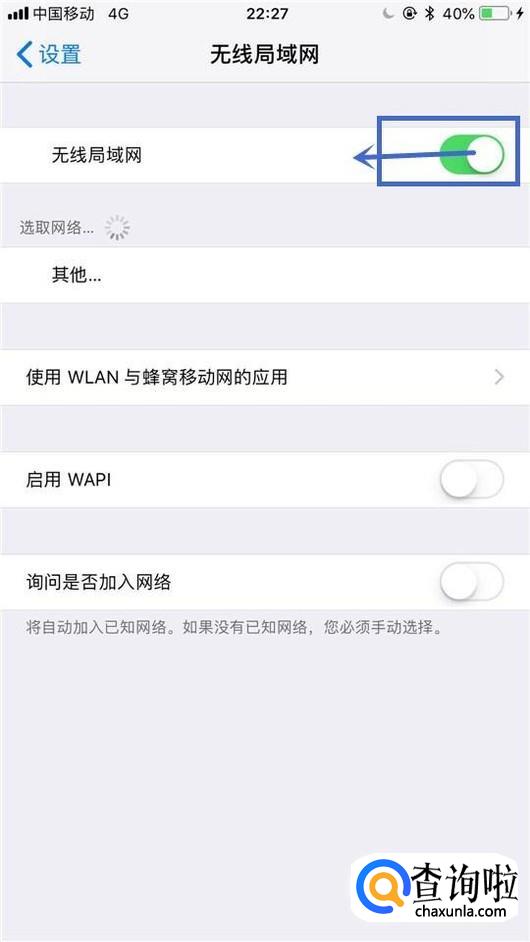 然后再次把无线局域网开关打开,如下图所示。