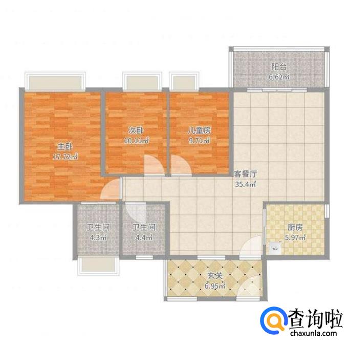 此外房屋格局的尺寸也要合理,一般来说客厅的开间都最好不要小于3.6m,并且主卧一般都采用3.3*3.6等尺寸,卫生间的话至少要有4平。