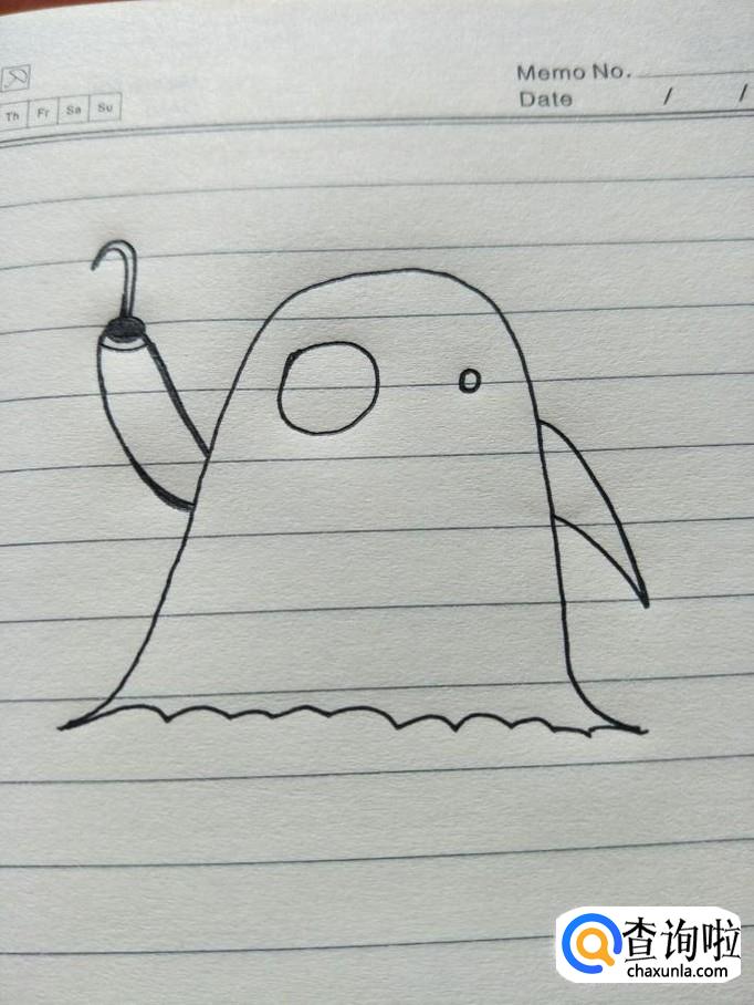 在圈的上部画一个像鱼钩一样的钩子,把手腕的上面一个圈涂成黑色的。