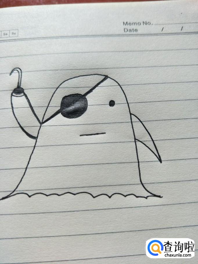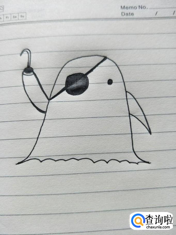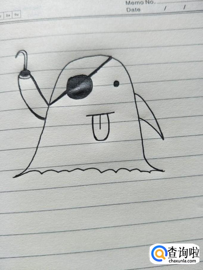 把右边的小圆涂成黑色,而左边,先画一条斜线,再涂黑,这样就形成独眼的幽灵了。