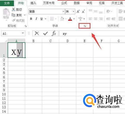 打开excel这款软件,然后在单元格内输入需要的公式,并选择需要上下标的字母,然后再找到字体右下角的设置选项,如图所示: