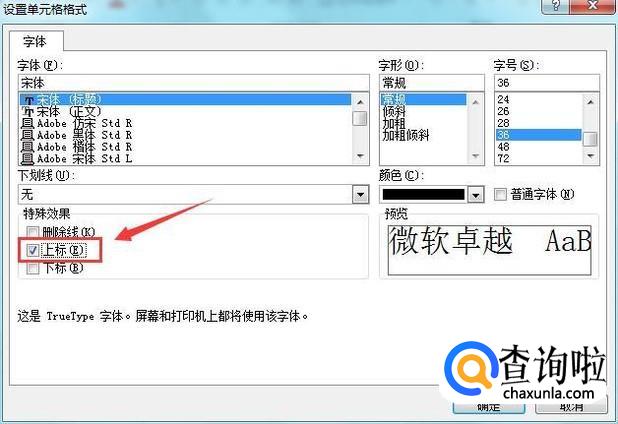 点击设置选项在弹出的对话框内选择上标,如图所示: