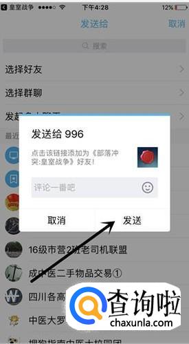 接着选中需要邀请对战的好友,好友收的邀请信息后,点击信息即可和你进行对战了。