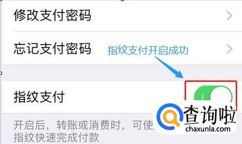 如果我们之前没有开通指纹支付的话,系统默认这一项是关闭的,从下图我们也能看出来;
