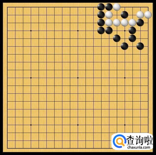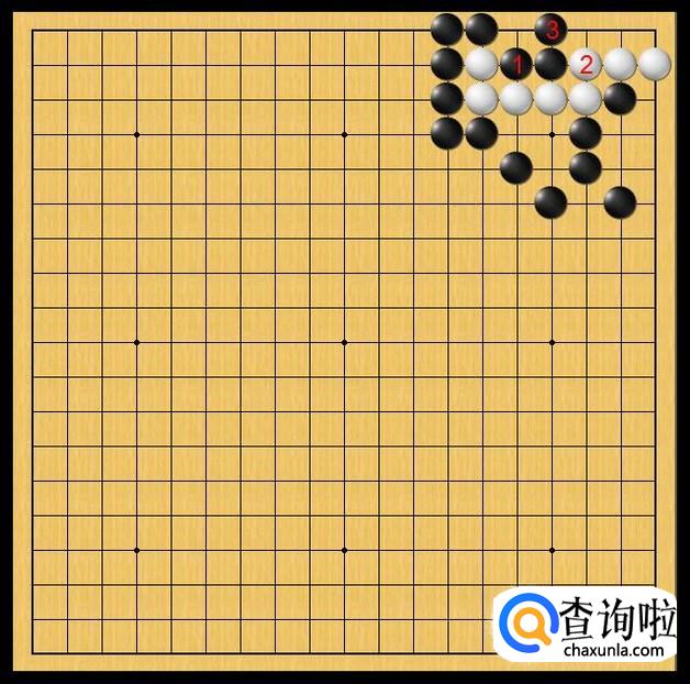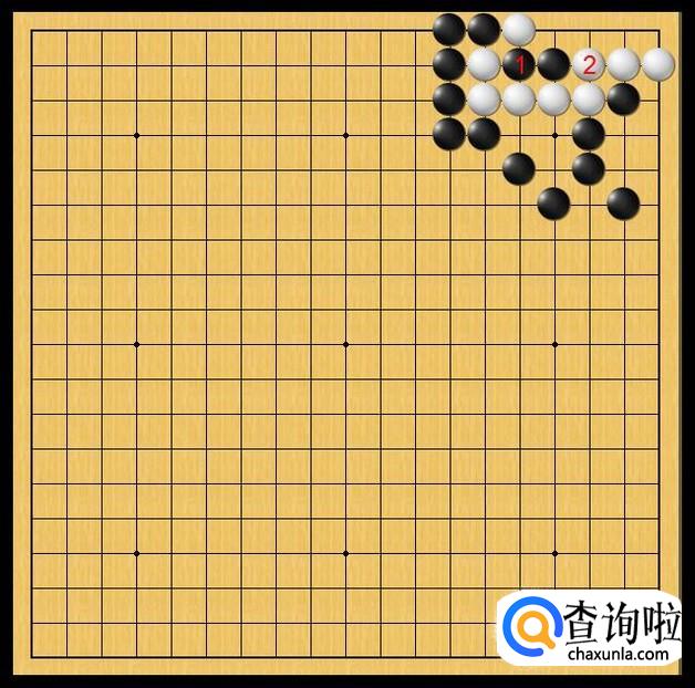 白棋也不甘示弱,于白2处落子,打吃在白棋内部底线上的黑二子。当然,白2的打吃只是虚张声势,白棋真正的目的是在右上角做眼。白2落子后,白棋也成功的在右上角做起了一个眼位。如图所示。