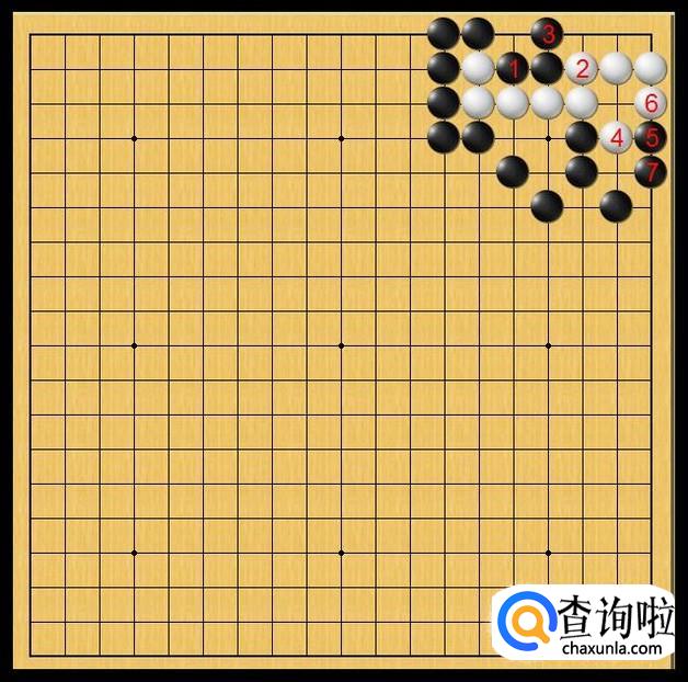 黑棋于黑7处长,黑7的长使得底线上的黑二子成功的和外围黑棋连接。而白棋由于关键眼位被黑棋抢占,在这里只形成了一个假眼。如图所示。