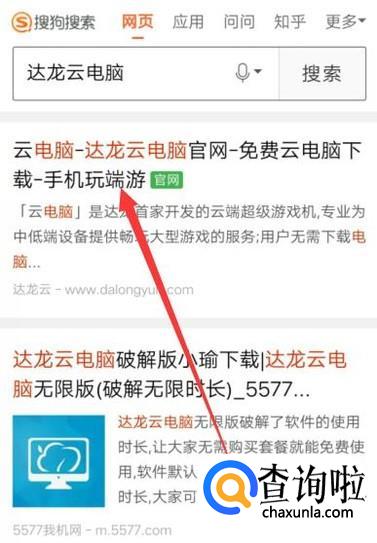 进入之后,搜索达龙云电脑,进入官网将其下载安装到手机上面,如图所示。
