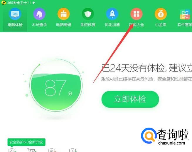首先我们打开360安全卫士点击“功能大全”。