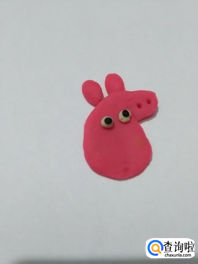 先用粉色的捏一个吹风机的形状,当作小猪佩奇的头。