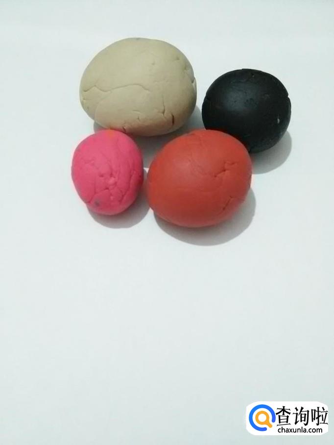 准备黑、白、红、粉四块粘土。