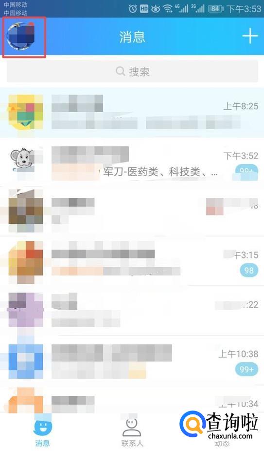 首先,我们打开我们的手机,然后我们登录手机QQ,之后我们点击左上角的头像;