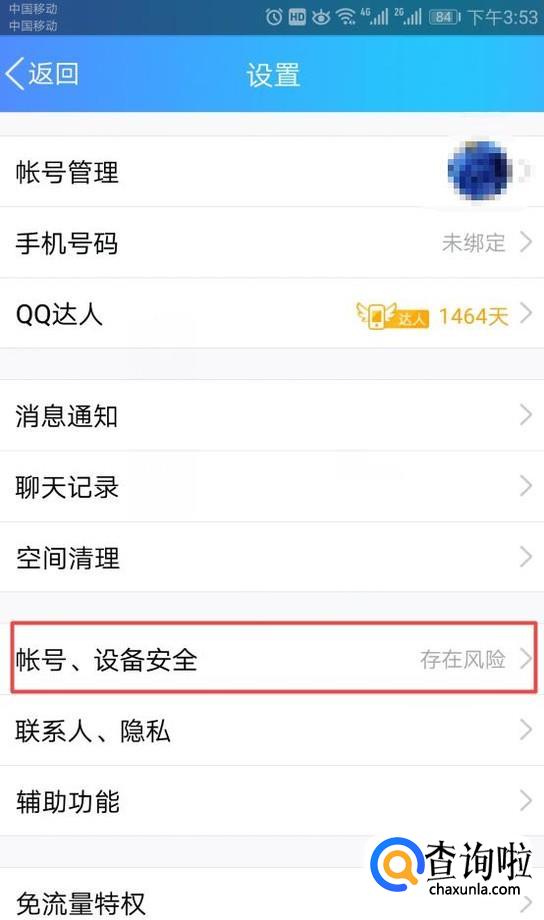 弹出的界面,我们点击账号、设备安全;