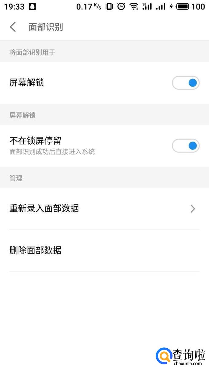 验证成功后进入面部识别设置界面,开启“屏幕解锁”,录入面部数据即可。