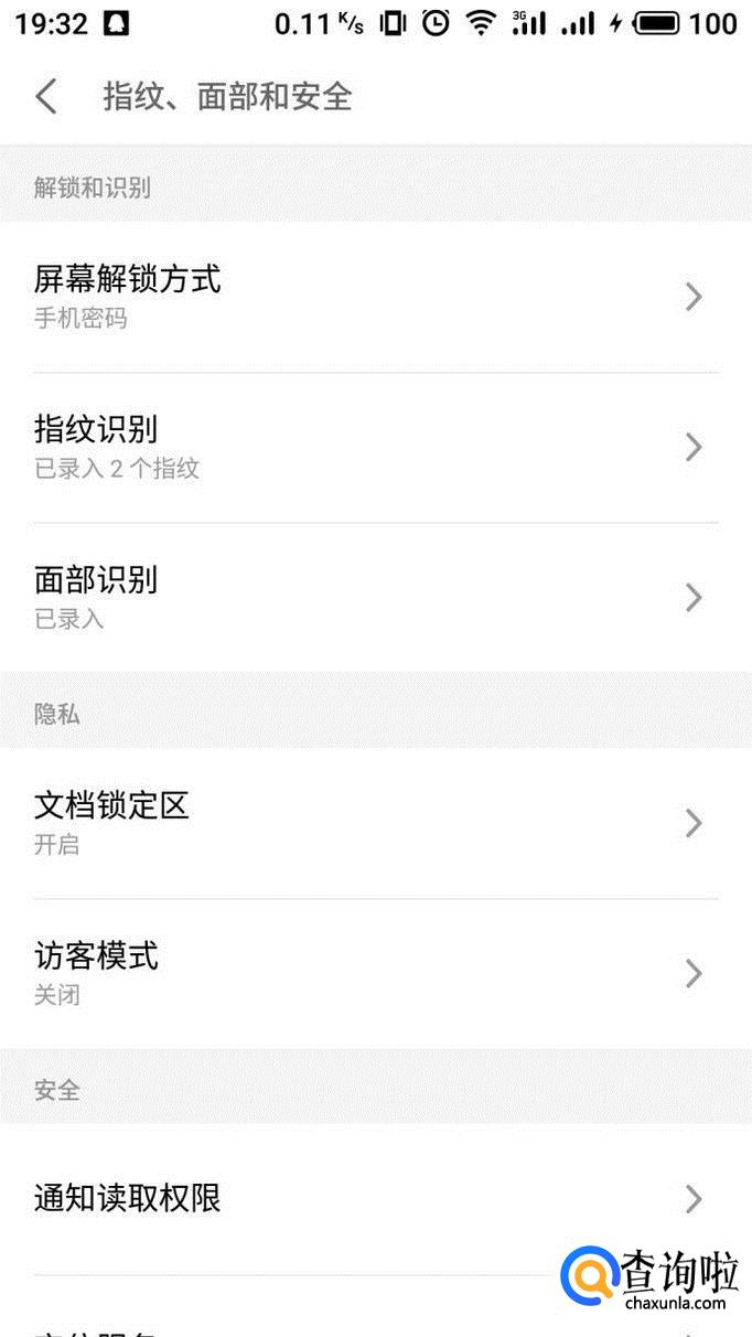 进入MIX2系统设置界面,在选项中点击“指纹、面部和安全”
