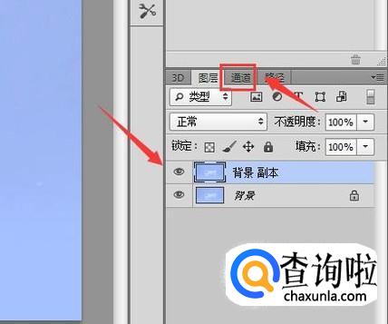 打开ps将我们需要抠图的玻璃杯图片打开,打开图片之后在图层里将其复制一份,然后在找到通道选项,如图所示:
