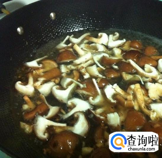 在锅里面加入香菇片,然后放入八角,如图所示。