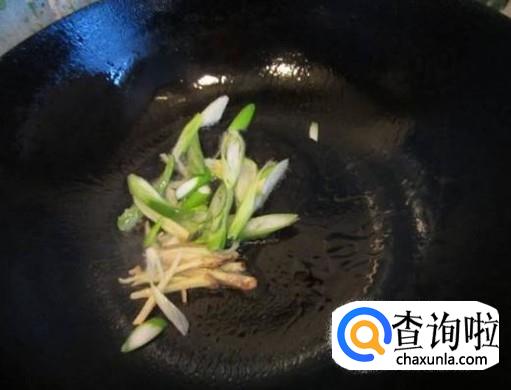 起锅烧油,加入葱姜爆香,加入适量的清水,如图所示。