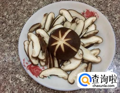 将香菇切成薄片,放在一边备用,如图所示。