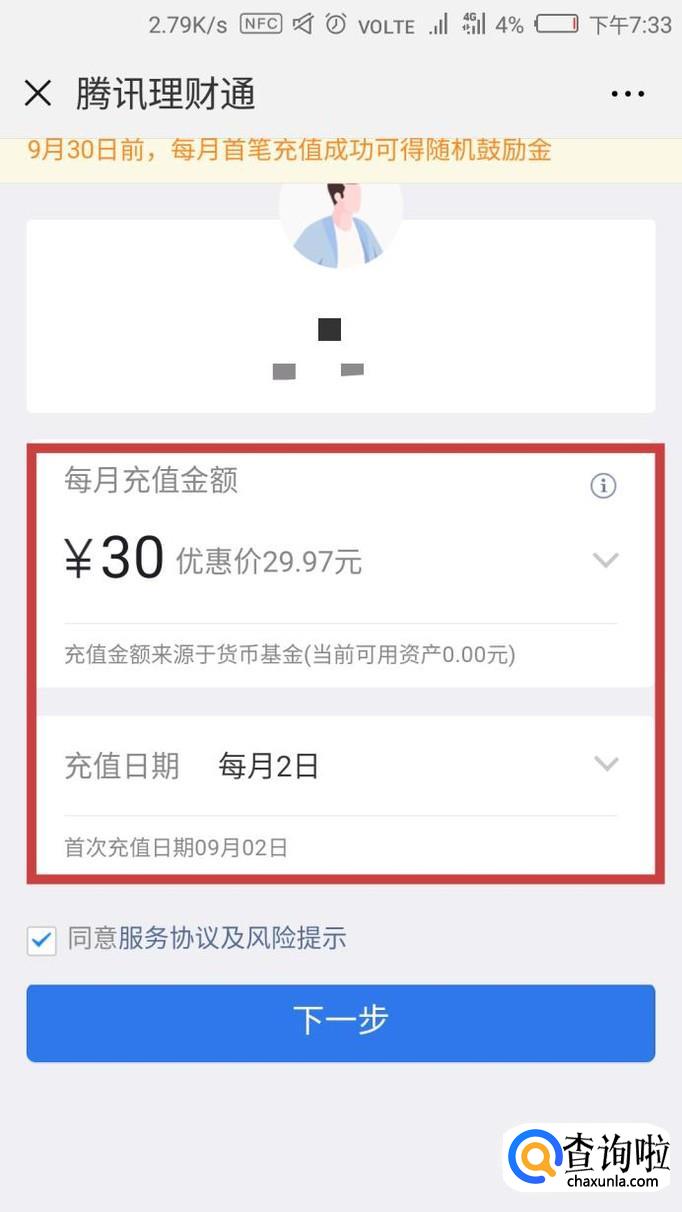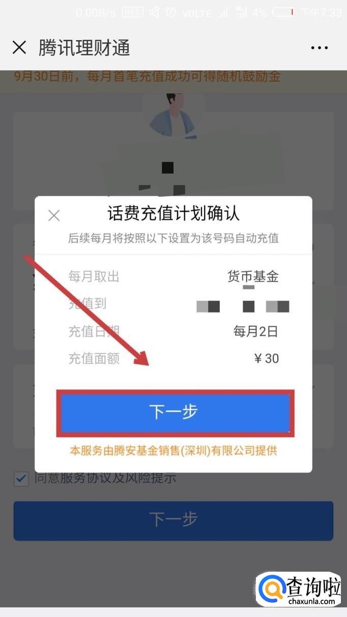 这里系统会让你再确定一下你设置的话费充值计划,确认无误后点击【下一步】即可。
