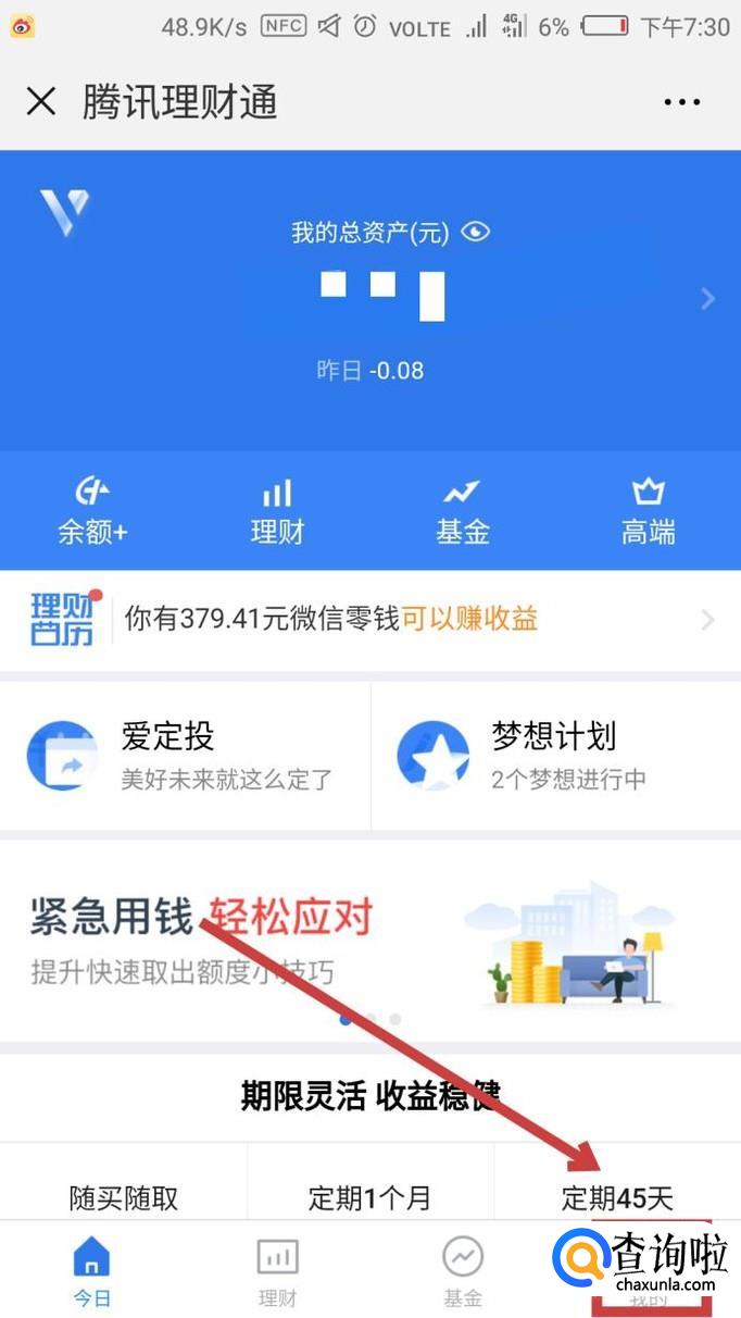 打开腾讯理财通后,在界面右下角找到【我的】,点击进入。