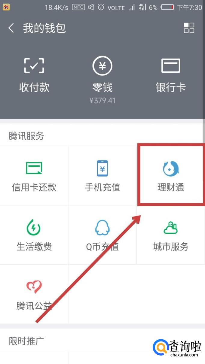 然后你就可以在【腾讯服务】中找到【理财通】了,如图所示。