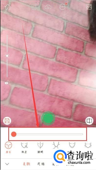 回到软件首页,点击“自拍”,进入之后点击“美颜”按键,将美颜成都调整到没有即可,如图所示。