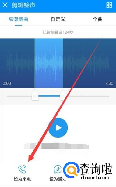进入之后,截取好音乐片段,点击“设为来电”即可,如图所示。