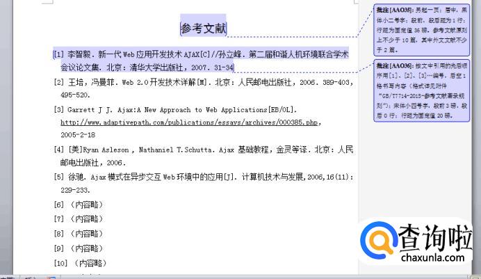 (1)参考文献:另起一页;居中,黑体小二号字;段前、段后距为1行;行距为固定值36磅。参考文献原则上不少于10篇,其中外文文献不少于2篇。