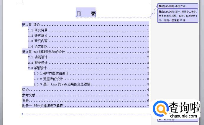 (2)目录内容:宋体小四号字,行距:固定值20磅,标题列至一或二级节标题。