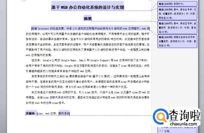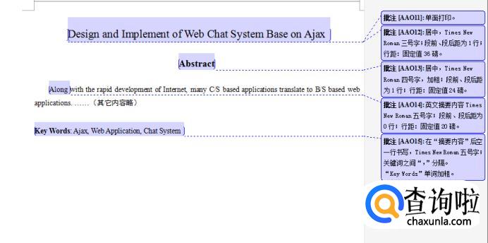 (2)摘要内容:宋体五号字;设置段前、段后距为0行;行距:固定值20磅。