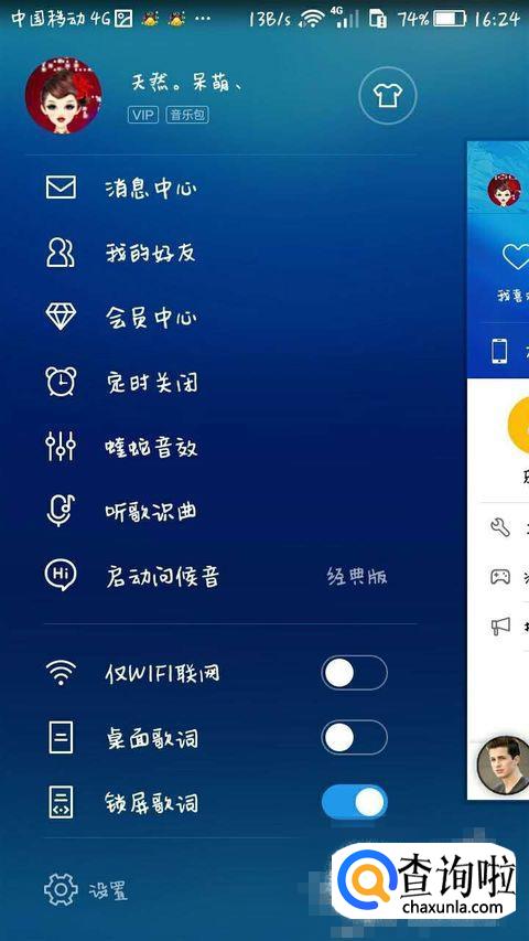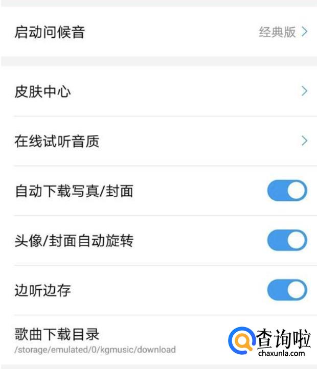 打开自己手机上的酷狗音乐播放器,在设置中把歌曲播放设置成边听边存。