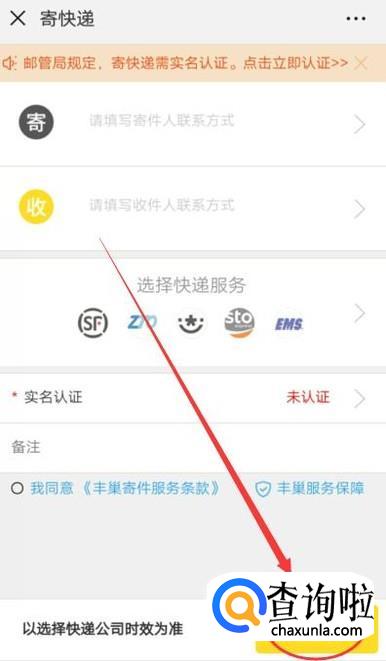 关注该公众号之后,点击左下角的“寄快递”,进入下一页面,如图所示。
