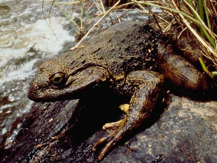 非洲巨蛙可能是蛙类家族中个头最大的,一只成年雄蛙体重足有3公斤,身长约30厘米,若是将它的两腿拉开,身长可达1米多。据说,只有苏里南的“比法马里尼”蟾蜍可与之相比。然而,这种罕见的蛙类正面临灭绝的危险,它的名字已经上了华盛顿条约规定禁止国际交易的濒危物种的红色名单。