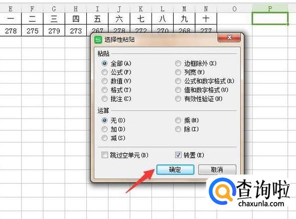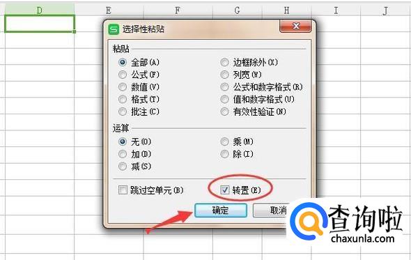 同样,勾选“转置”,再点击“确定”即可。