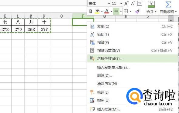 复制成功后,右击目标单元格,再点击“选择性粘贴”。