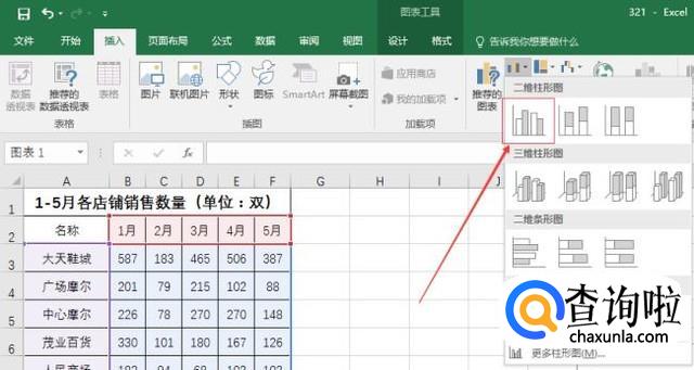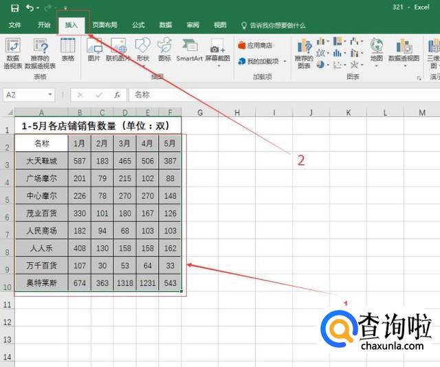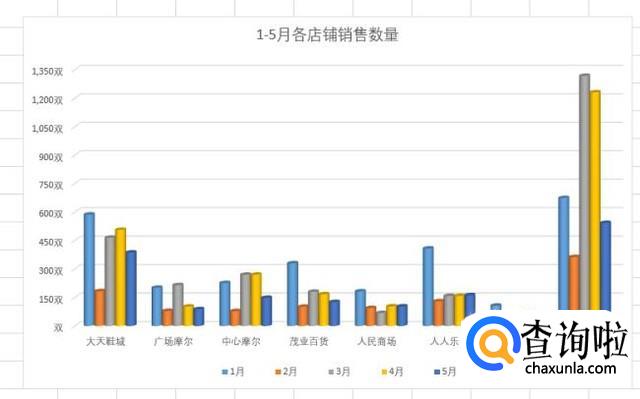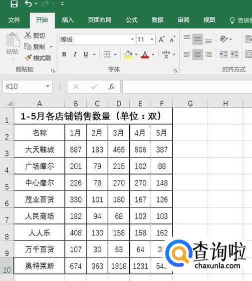 打开一张空白的EXCEL表格,输入近5个月各店铺的销售数量