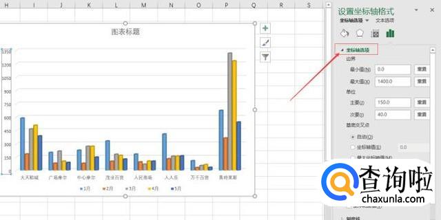 在EXCEL中经常会用坐标图来表现各种数据,为了让人一目了然,就会用到坐标轴刻度和单位来设置。双击选中图表的坐标然后点击右键,设置坐标轴格式,然后输入需要的数值就可以了。下面以EXCEL2013为例,详细介绍一下操作步骤。