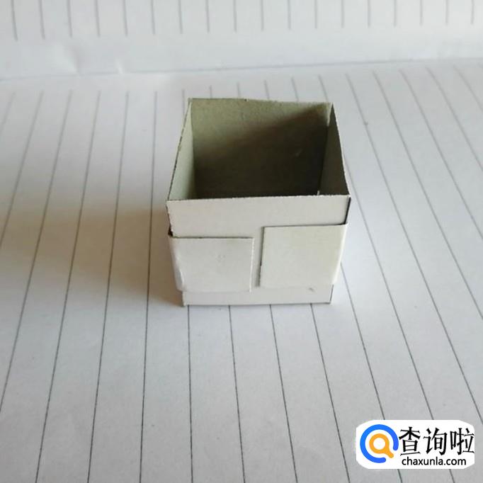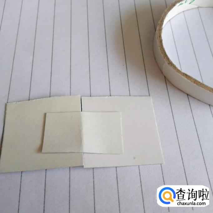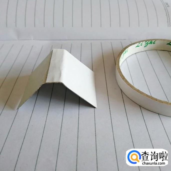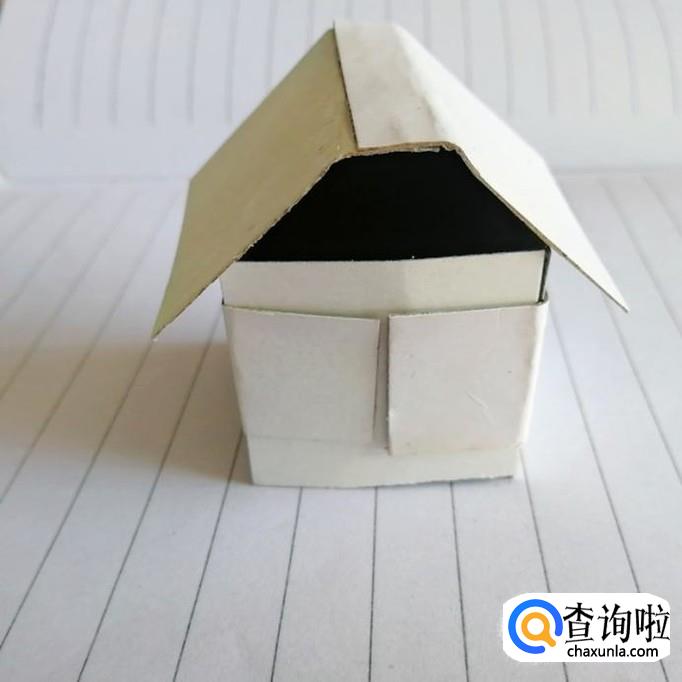再用二个正方体,一个长方体,用双面胶粘起来,再往内侧稍稍折一下,做成房顶。如图所示。