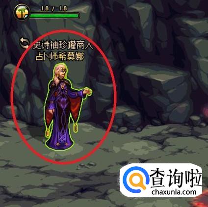在亡者峡谷地下城的入口处,找到史诗袖珍罐商人NPC占卜师希莫娜。