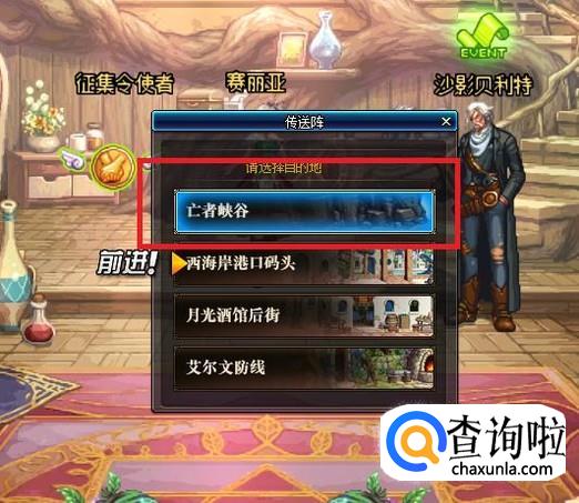 首先,回到赛丽亚的房间,使用房间右侧的传送阵前往“亡者峡谷”。