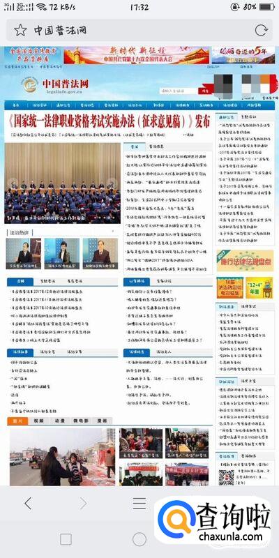 网站查询,打开浏览器,输入中国普法,进去官方网站,找到下方的国家司法考试。