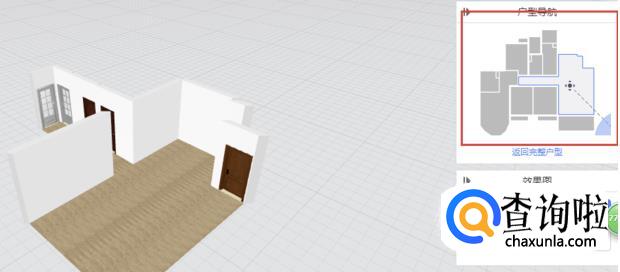 这时我们就可以看见房子的3D模型,当然也可以选择“平面视角”以及“吊顶视角”。