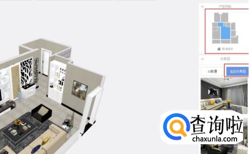 点击页面右侧“渲染效果图”。tips:也可以先在右上角选择单个房间然后再进行渲染。