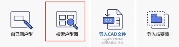 在出现的页面中选择“搜索户型图”,随便选择一个喜欢的户型,当然也可以自己完成户型图的设计。
