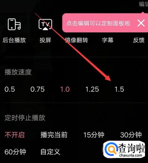 进入之后,即可设置1.5倍播放速度,还可以设置其他倍率的播放速度,如图所示。