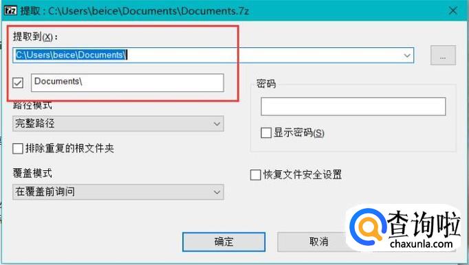 然后在“提取”对话框中设置好要提取到的位置和文件夹名称,点击确定。注:设置了密码的要输入密码。