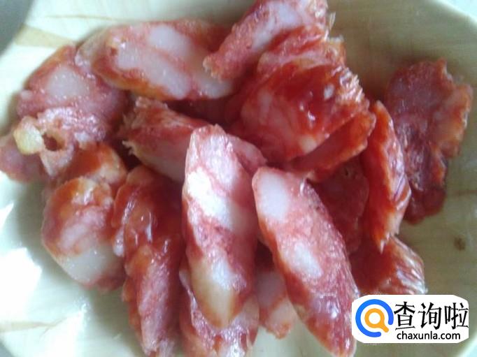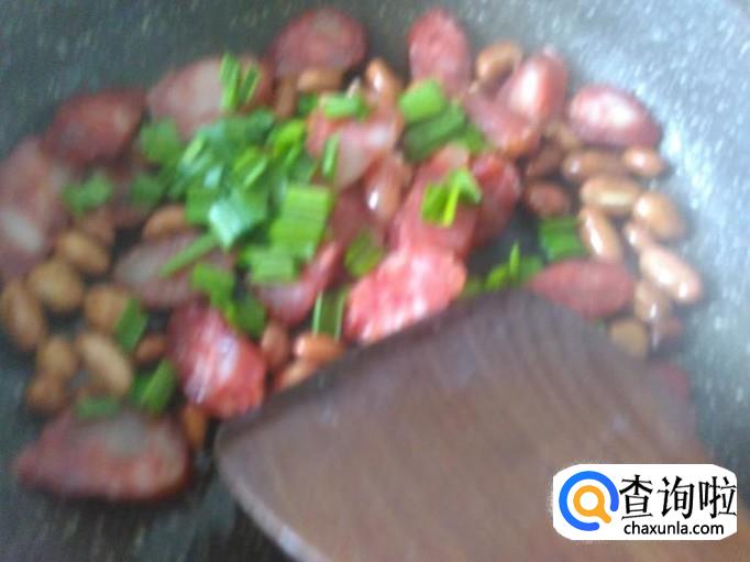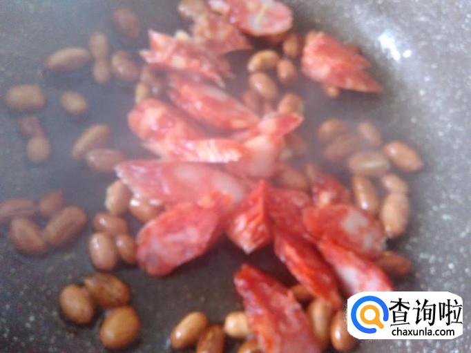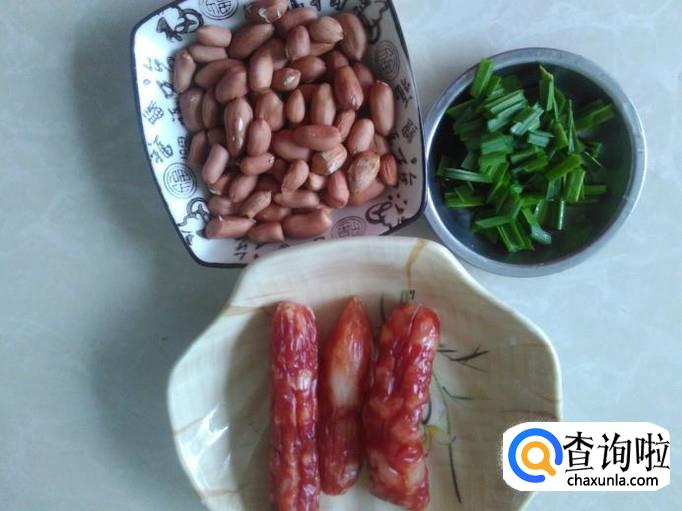花生、香肠、青蒜准备好。
