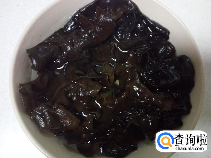用温水快速泡发木耳,把泡发好的木耳收拾清洗干净,控干水分。