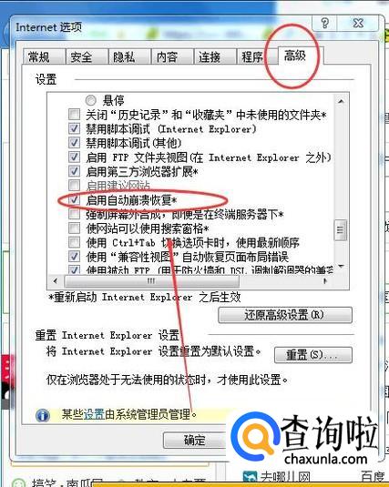 在下方中找到【启用自动崩溃恢复】,并且对【启用自动崩溃恢复】选项打勾即可,如下图所示: